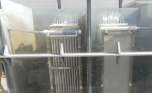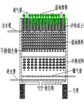 生物碳纖維平板膜組件是將過濾膜與生態(tài)碳纖維復(fù)合材料合理地結(jié)合在一起,對污水先經(jīng)過濾膜過濾,再經(jīng)生態(tài)碳纖維復(fù)合材料進(jìn)一步吸附凈化,提高了清水的純度和潔凈度并提高了平板膜組件的耐污性和膜通量及使用壽命。